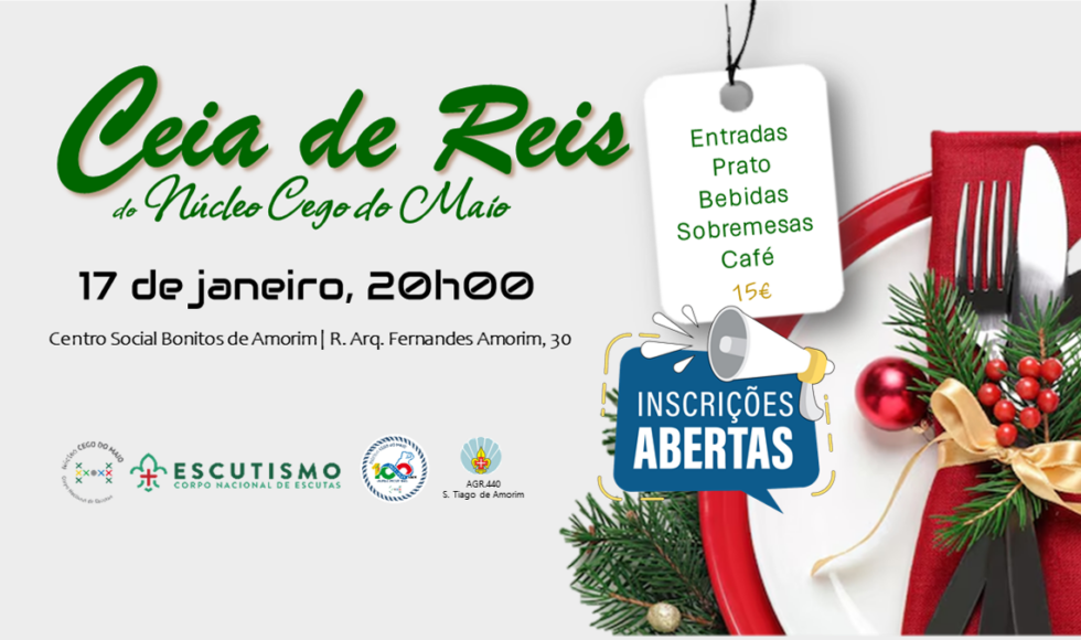 A Junta de Núcleo e a Direção do Agr. 440 – S. Tiago de Amorim, convidam todos os Dirigentes, Equipas de Animação (e nesta edição, excepcionalmente, os caminheiros participantes no Conselho do Núcleo), a participarem numa das nossas mais bonitas e acarinhadas tradições: a Ceia de Reis do Núcleo Cego do Maio.