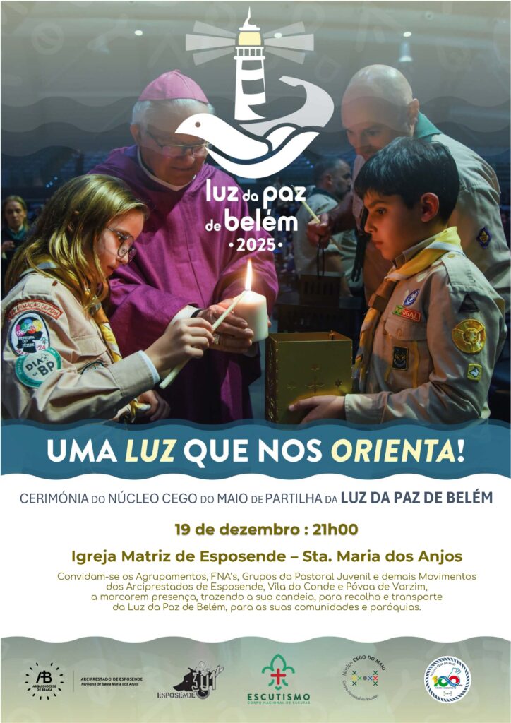 Convidamos os nossos Agrupamentos , as FNA’s, os Grupos da Pastoral Juvenil e demais Movimentos dos Arciprestados de Esposende, Vila do Conde e Póvoa de Varzim, a marcarem presença, trazendo a sua candeia, para recolha e transporte da Luz da Paz de Belém, para as suas comunidades e paróquias.